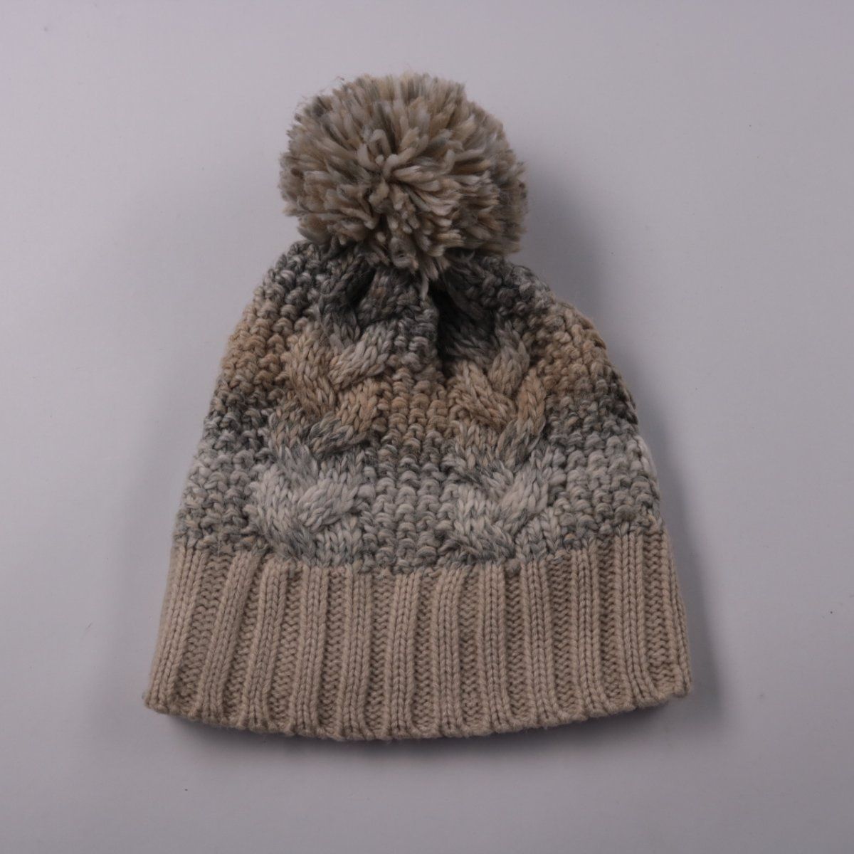 Вязаная зимняя шапка с помпоном и фактурным узором «косы», внутри тёплая подкладка из мягкого флиса. Подойдёт для прогулок и повседневной носки в холодную погоду. Хорошо удерживает тепло и комфортно сидит за счёт широкого отворота.