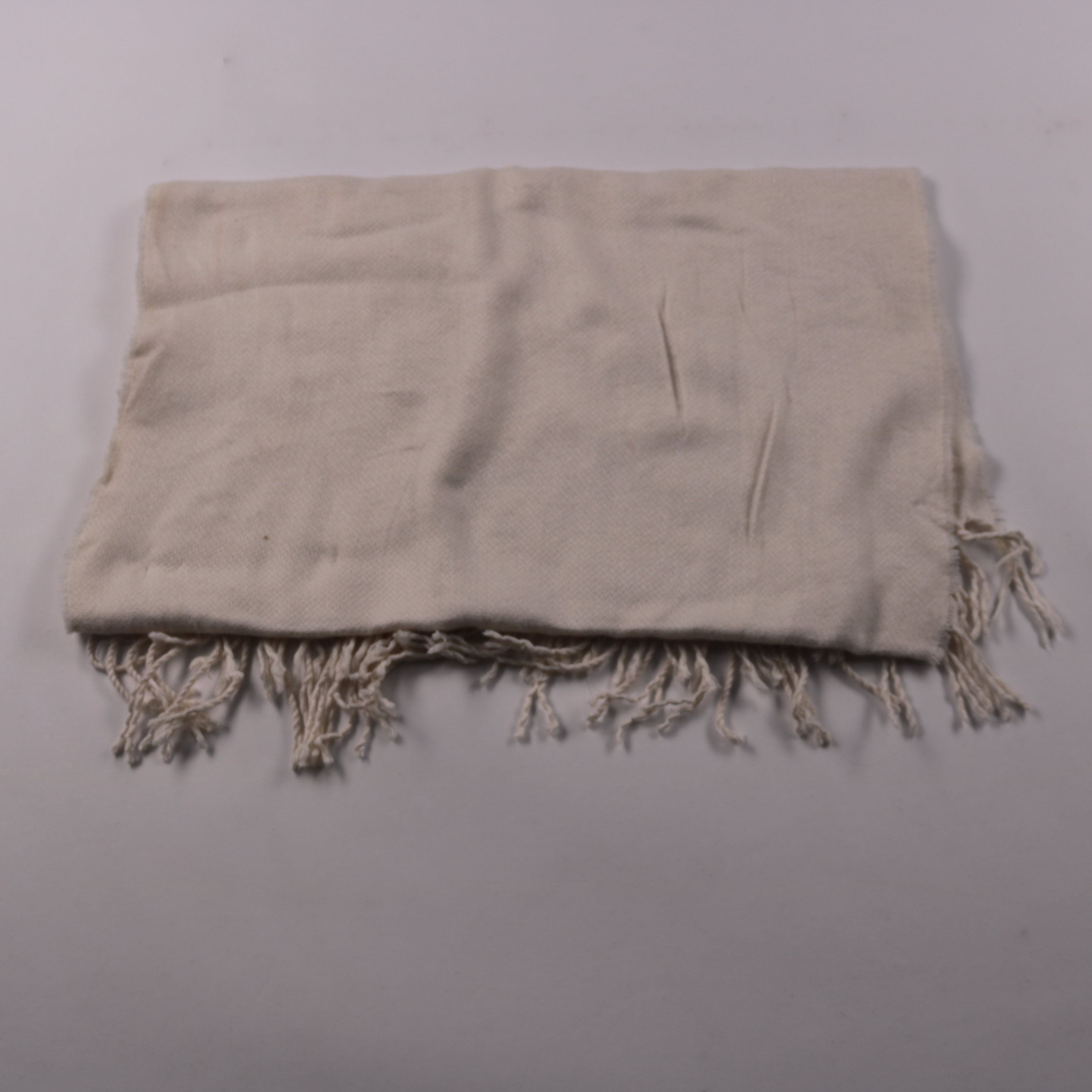 Однотонный шарф светло-бежевого цвета с бахромой по краям. Подойдёт для повседневных образов и в офис, удобно драпируется и хорошо сочетается с базовой верхней одеждой. Лёгкий и компактно складывается, не занимает много места в сумке.
