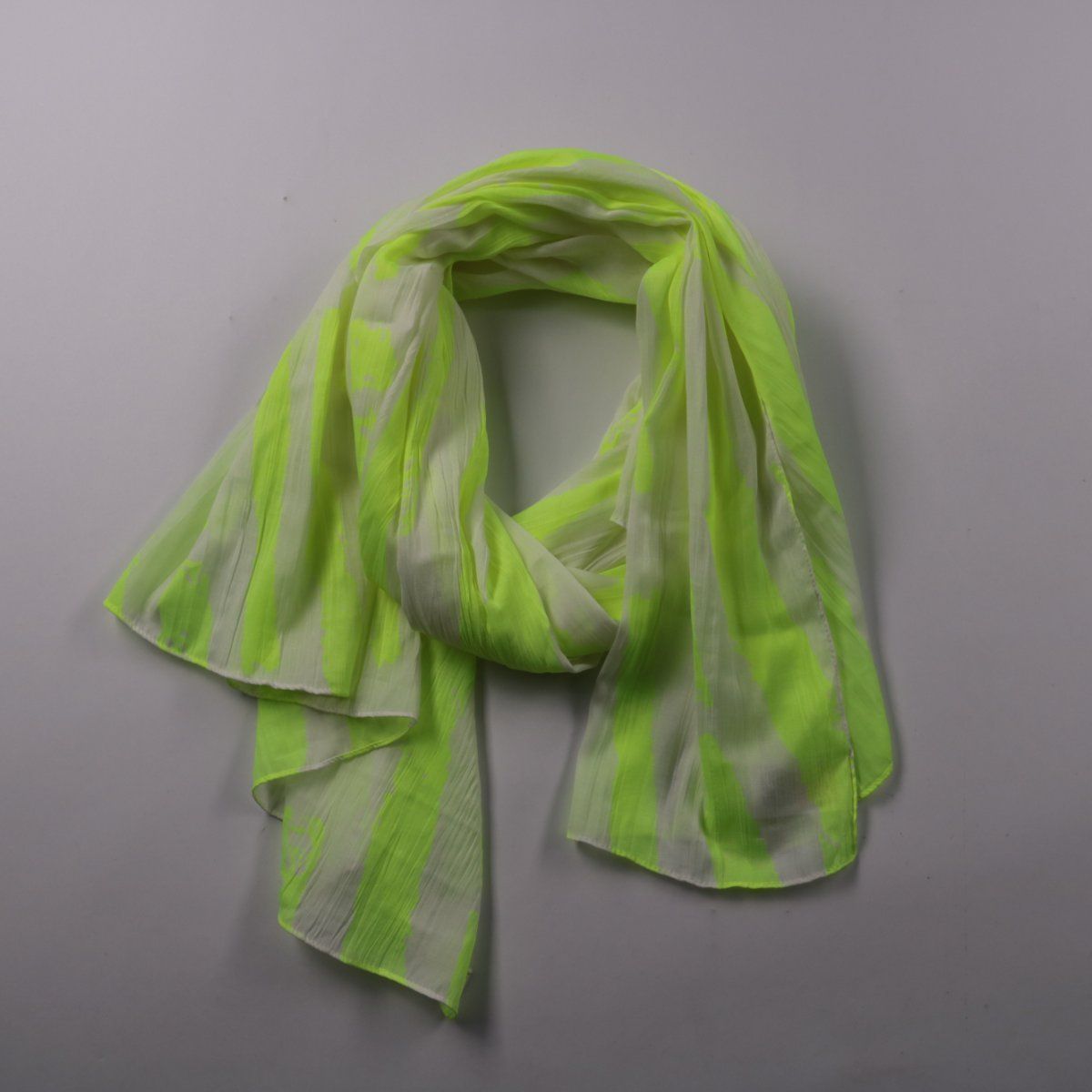 Лёгкий шарф из 100% полиэстера с ярким салатово-белым принтом. Подойдёт для весны и лета, а также как акцент к однотонной верхней одежде в межсезонье. Практичен тем, что почти не мнётся и быстро сохнет.
