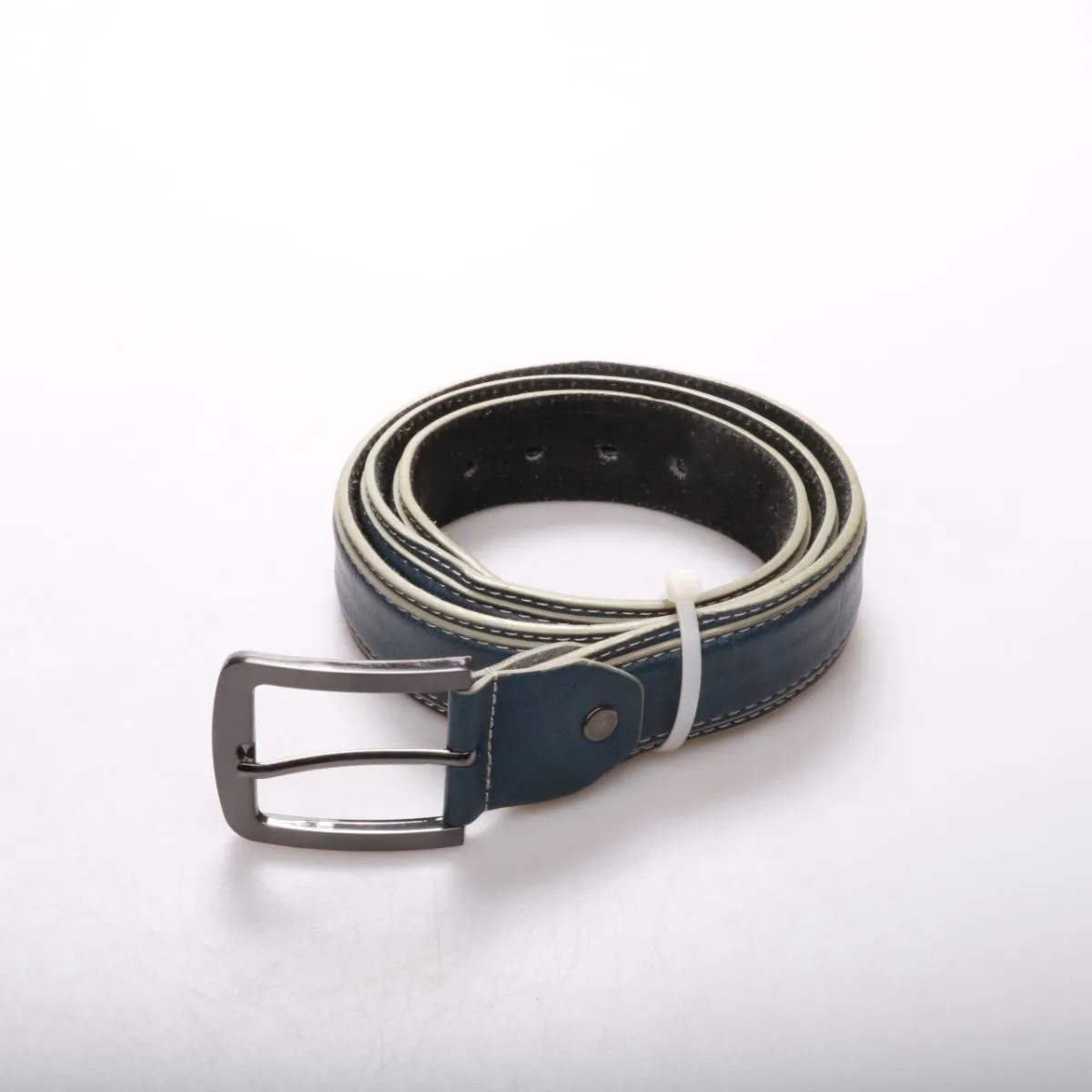 Ремень без указанного бренда, тёмно-синего цвета с контрастной светлой окантовкой и металлической пряжкой. Подойдёт для повседневных образов с джинсами или брюками. Практичное преимущество — легко регулируется по посадке за счёт классической застёжки н...