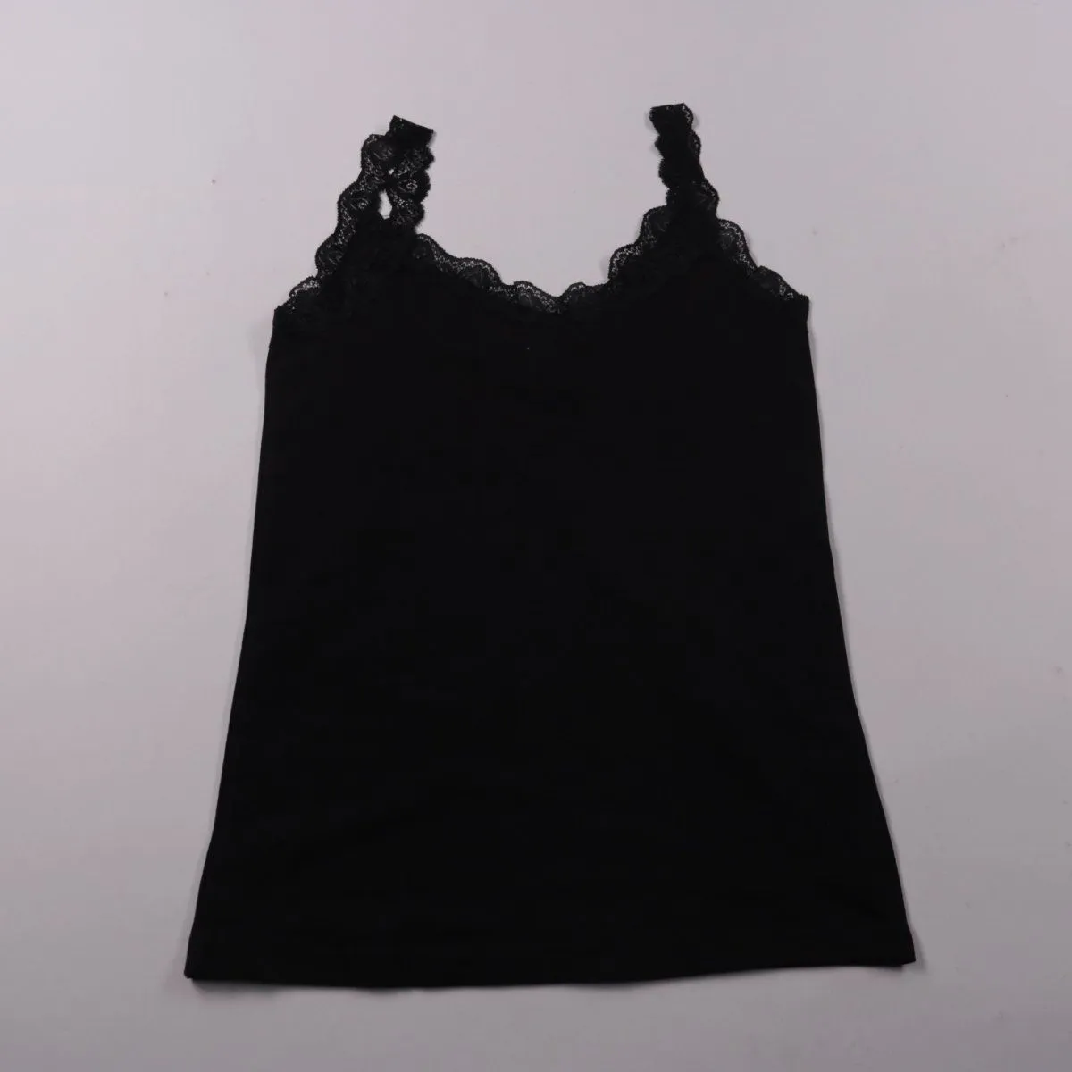 Чёрная майка George на тонких бретелях с кружевной отделкой. Подойдёт девочке 8–10 лет для дома или как базовый слой под одежду. Хлопковая ткань с добавлением эластана тянется и комфортно сидит.