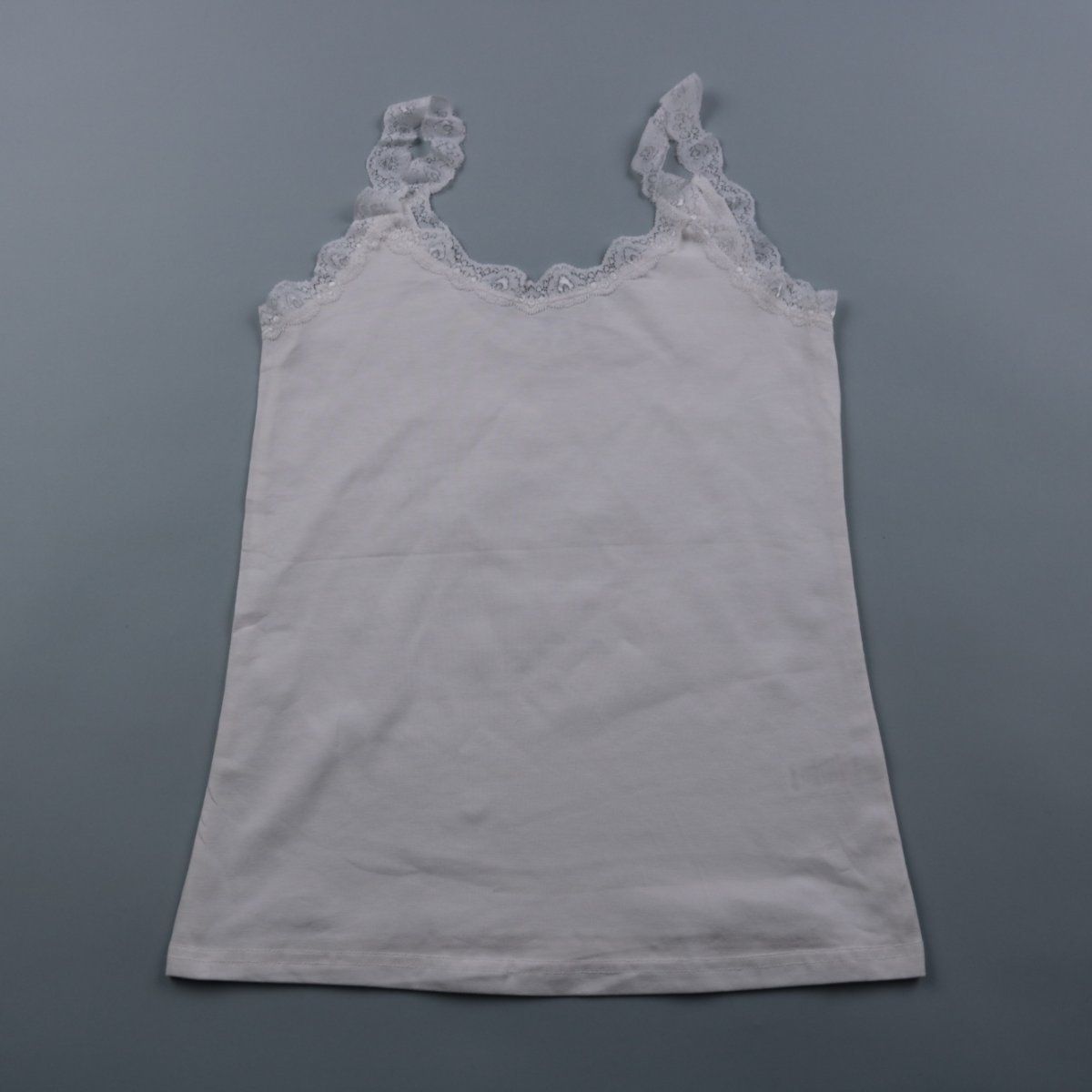 Белая майка George на тонких бретелях с кружевной отделкой по верху. Подойдёт как нижний слой под школьную форму или повседневную одежду. Хлопковая ткань с добавлением эластана хорошо тянется и комфортно сидит.