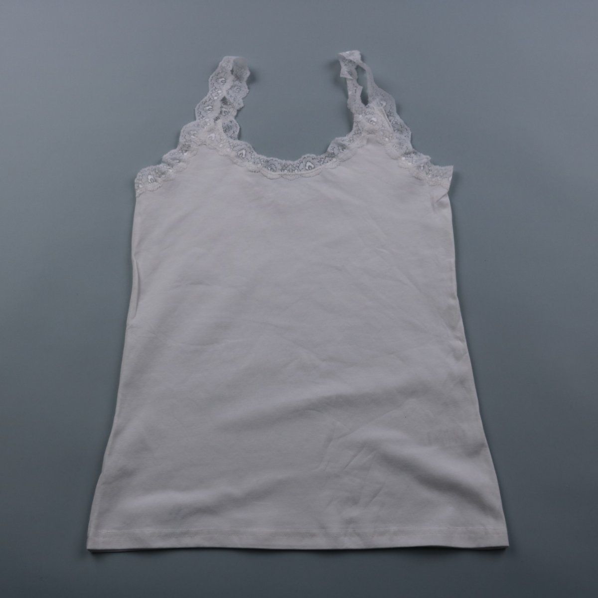 Белая детская майка George на тонких бретелях с кружевной отделкой по верху. Подойдёт как нижний слой под школьную форму, свитер или худи. Мягкий хлопковый трикотаж хорошо тянется и удобно сидит под одеждой.