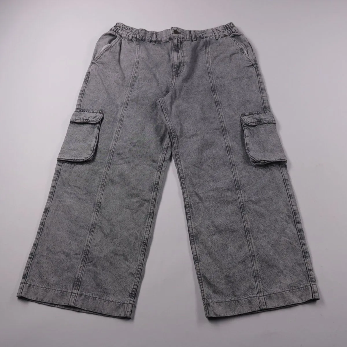 Брюки Tu из серого денима с накладными карманами-карго по бокам. Подойдут для повседневной носки и прогулок в прохладную погоду. Плотный хлопок хорошо держит форму и практичен в уходе.