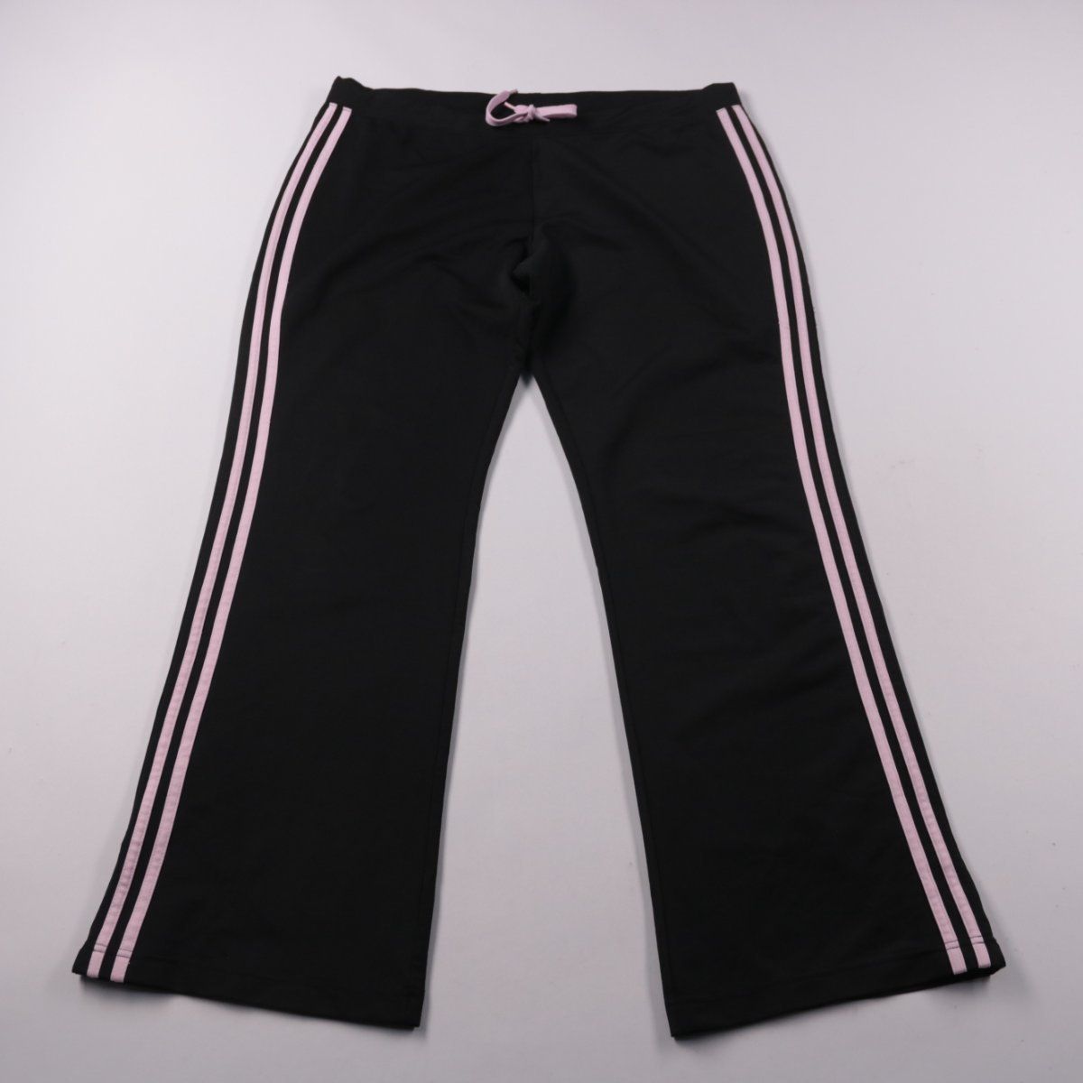 Спортивные брюки Papaya чёрного цвета с розовыми лампасами по бокам и лёгким клёшем к низу. Подойдут для физкультуры, прогулок и повседневной носки благодаря эластичному поясу со шнурком. Ткань тянется и проста в уходе.