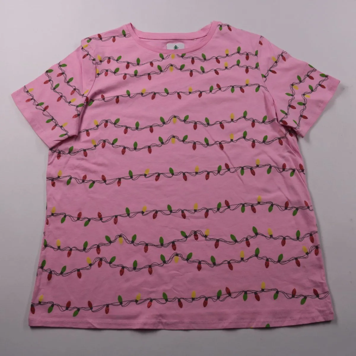 Футболка George розового цвета с принтом в виде гирлянд, короткий рукав. Подойдёт для повседневной носки летом или как слой под кофту в садик/школу. Хлопковая ткань хорошо дышит и проста в уходе.