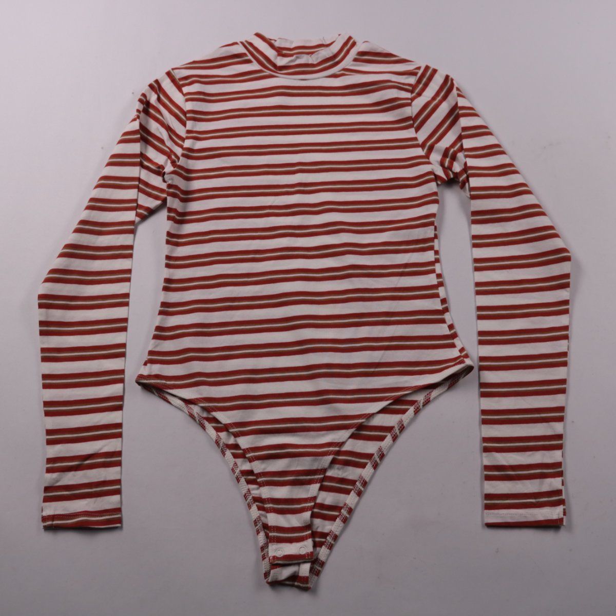 Боди Primark Cares в бело-красную полоску с длинным рукавом и высоким воротником. Подойдёт для повседневной носки в школу или на прогулки в прохладную погоду. Застёжка на кнопки снизу помогает быстро переодевать и удобно фиксирует посадку.