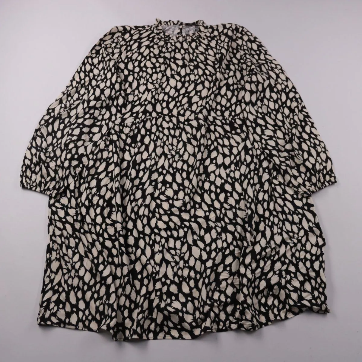 Платье George из лёгкой вискозы с длинными рукавами и чёрно-белым абстрактным принтом. Подойдёт для сада, прогулок и повседневной носки в демисезон. Свободный крой удобен для активного движения.