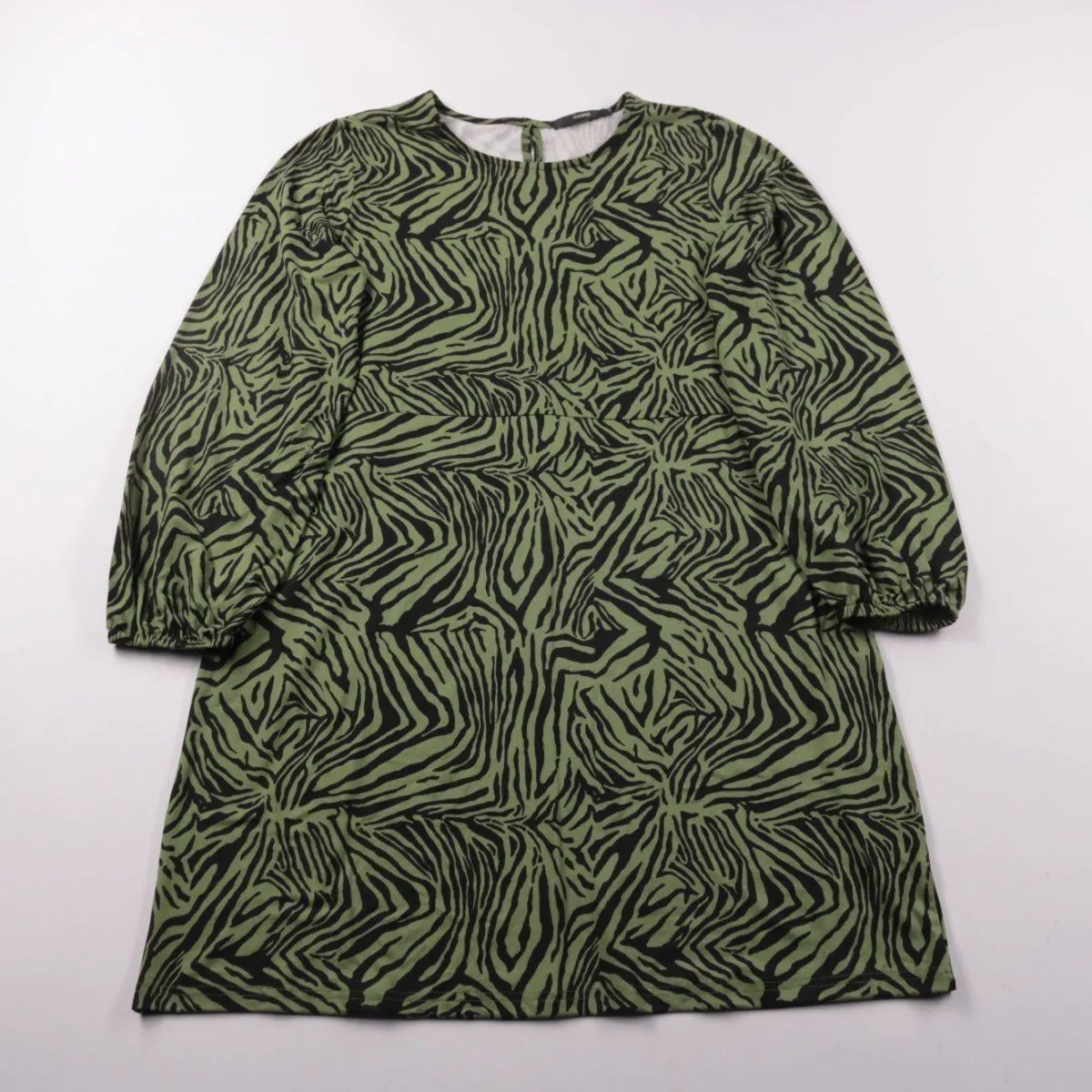 Платье George цвета хаки с чёрным зебровым принтом и длинными рукавами. Подойдёт для демисезона, повседневной носки и прогулок. Ткань с эластаном немного тянется и удобна в уходе.