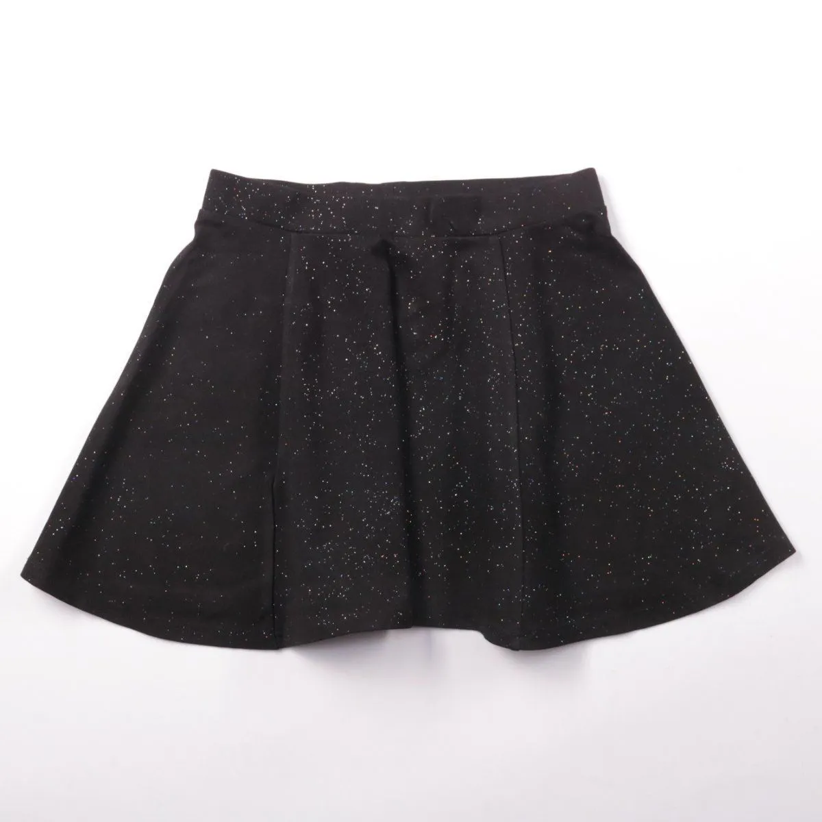 Юбка Coolcat чёрного цвета с мелким блестящим крапом и складками спереди. Подойдёт для школы, праздника или повседневных образов с колготками и свитшотом. Плотная ткань держит форму и удобно сидит на талии.