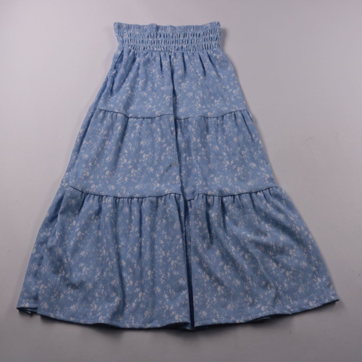 Ярусная юбка Ginatricot голубого цвета с мелким цветочным принтом и эластичным поясом. Подойдёт для повседневной носки летом и в школе/на прогулку. Пояс на резинке удобно регулируется по талии и не сковывает движения.