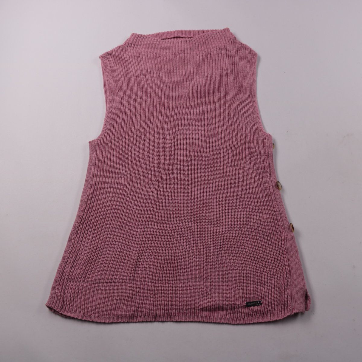 Вязаная кофта Marc O'Polo без рукавов, удлинённая, с высокой горловиной и пуговицами по бокам. Подойдёт для школы и прогулок в прохладную погоду как слой поверх лонгслива или водолазки. Смесь хлопка и акрила практична в уходе и комфортна в носке.