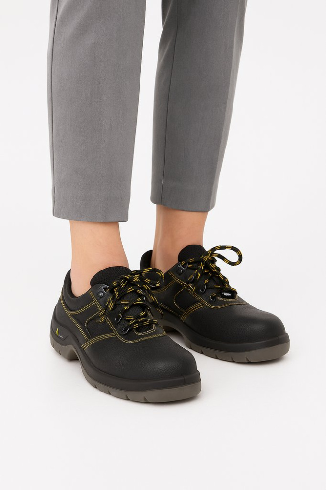 Рабочие полуботинки Delta Plus из чёрной кожи с прочной шнуровкой и контрастной прострочкой. Подойдут для работы на складе, в цеху или для повседневных задач, где нужна более защищённая обувь. Практичное преимущество — рельефная износостойкая подошва с...
