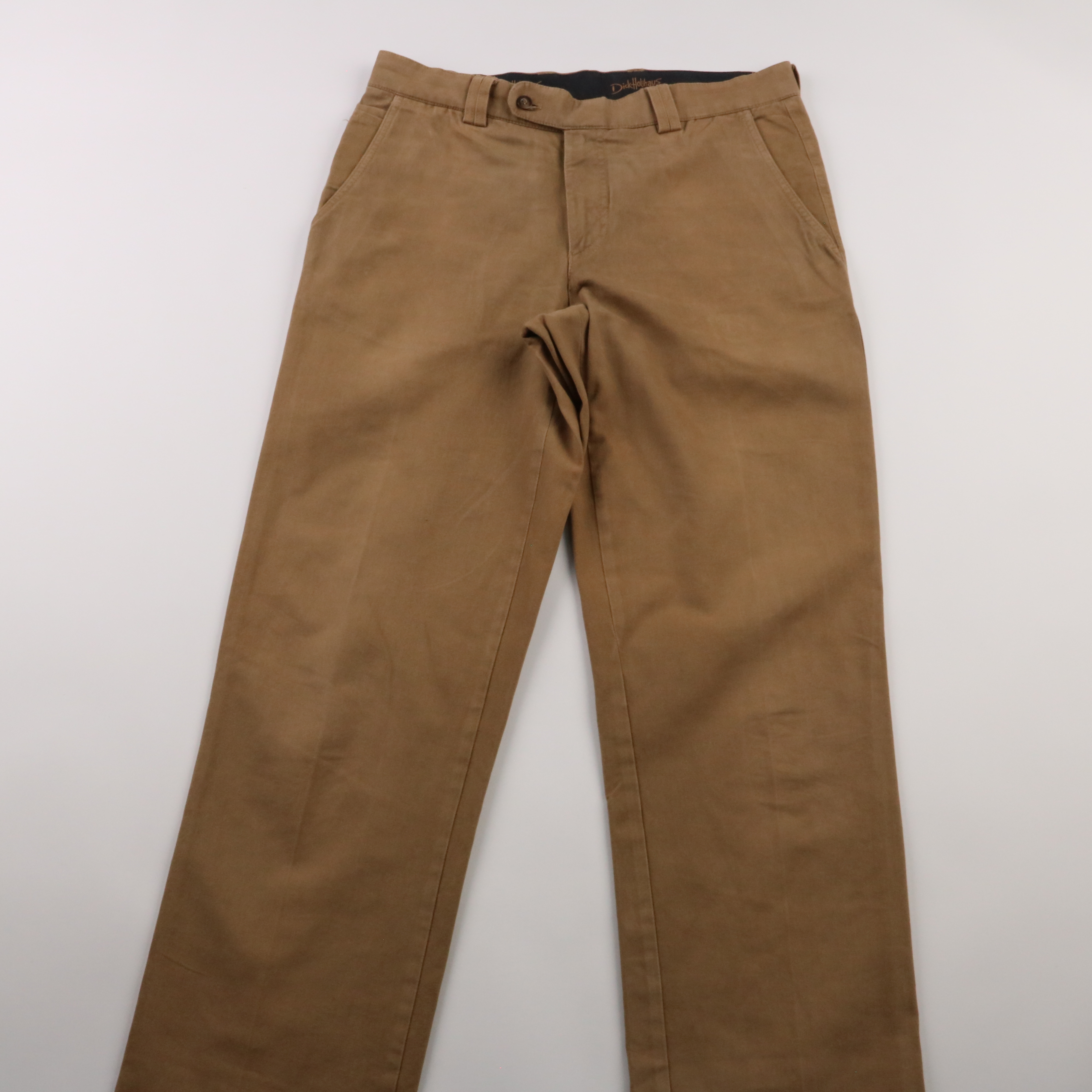 Мужские брюки DickHolthaus в коричневом (camel) цвете, прямой посадки, с боковыми и задними карманами. Подойдут для офиса и повседневных образов в любой сезон, легко сочетаются с рубашкой или свитером. Плотная хлопковая ткань с добавлением эластана ком...