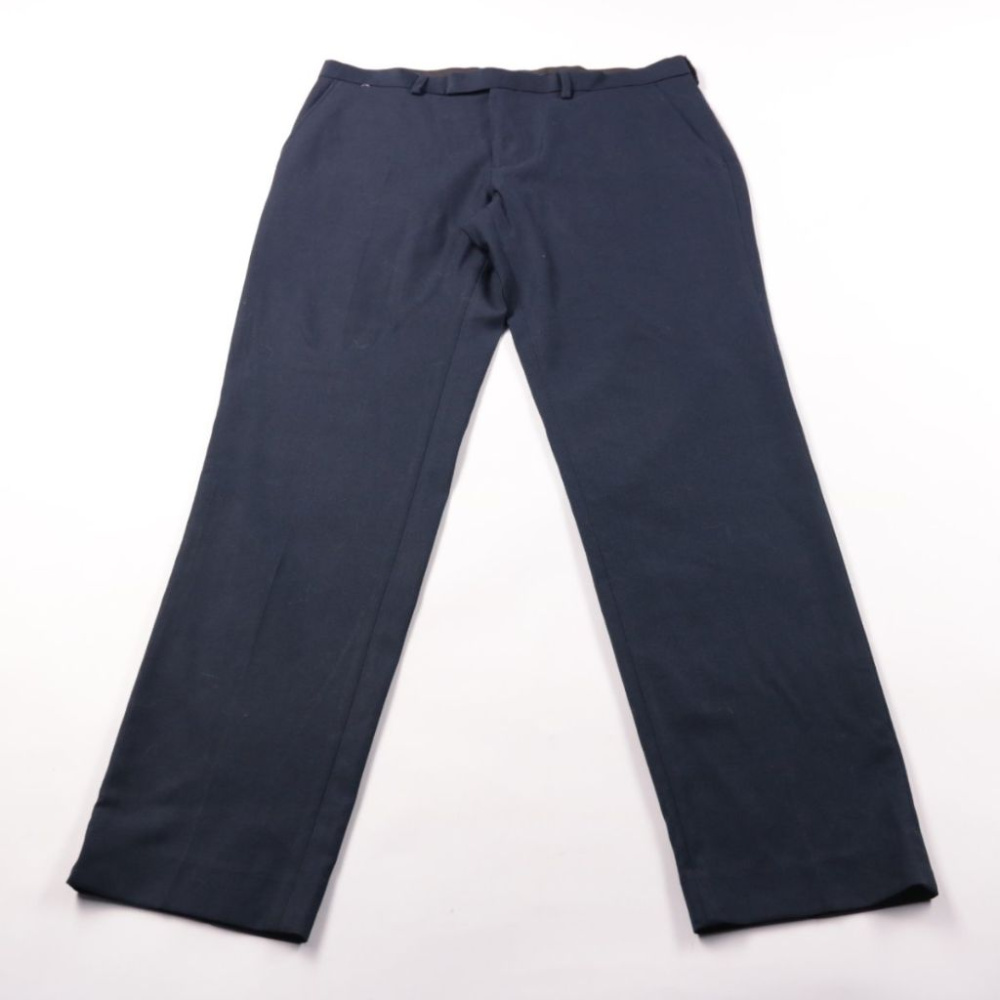 Мужские брюки M&S Slim Fit тёмно-синего цвета, аккуратные и слегка зауженные. Подойдут для офиса и повседневных образов благодаря лаконичному крою. Практичный плюс — ткань с эластаном хорошо держит форму и не сковывает движения.