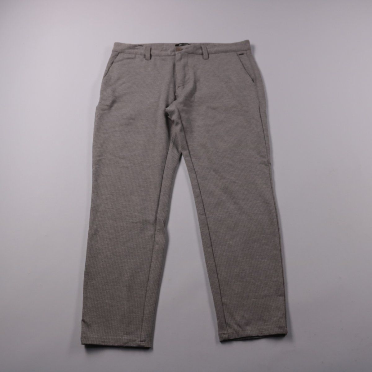 Мужские брюки Only & Sons серого цвета, прямого силуэта с боковыми карманами и шлёвками под ремень. Подойдут для повседневных образов и офиса в стиле smart casual, хорошо сочетаются с рубашкой или худи. Материал с добавлением эластана даёт комфортную посадку и не стесняет движения.