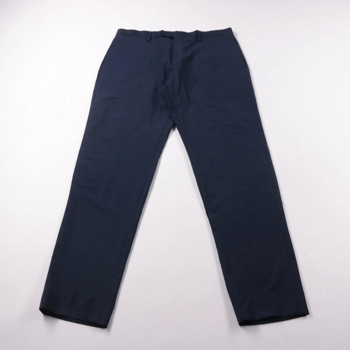 Мужские брюки Reiss в тёмно-синем цвете, классический прямой крой под ремень. Подойдут для офиса и мероприятий, легко сочетаются с рубашкой и пиджаком. Практичный плюс — шерстяная ткань с добавлением полиэстера меньше мнётся и держит форму.