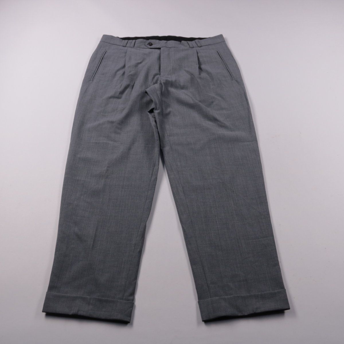 Мужские классические брюки Claudio серого цвета, с защипами и боковыми карманами. Подойдут для офиса и мероприятий, хорошо сочетаются с рубашкой и пиджаком. В составе есть лайкра — ткань немного тянется и комфортнее сидит в движении.