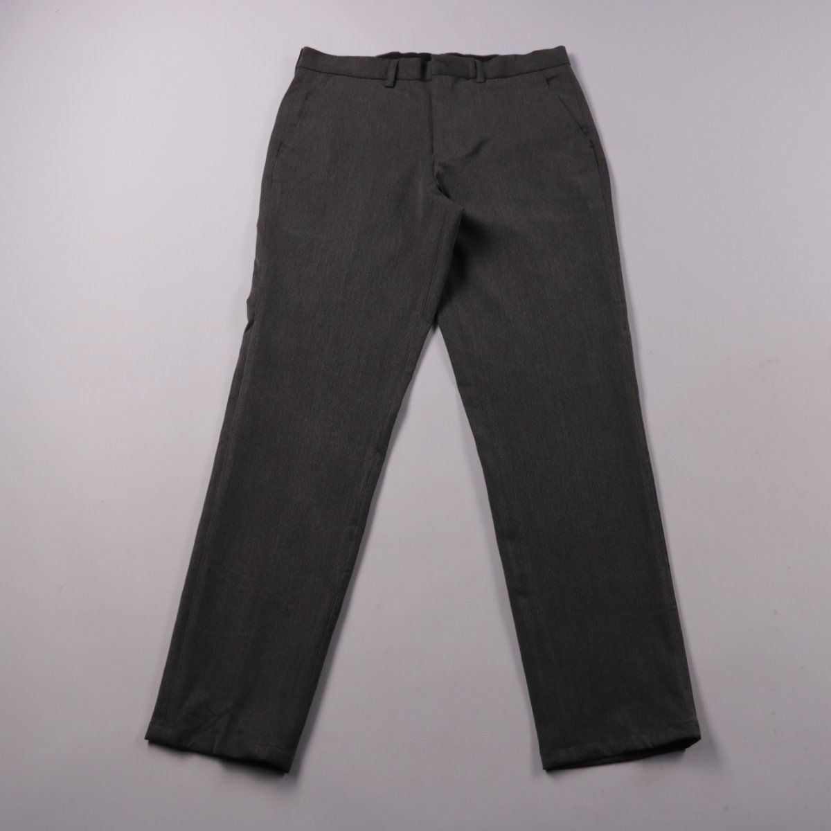 Классические мужские брюки тёмно-серого цвета без лишнего декора, со шлёвками под ремень и боковыми карманами. Подойдут для офиса, учёбы и деловых встреч, хорошо сочетаются с рубашкой или водолазкой. Смесовая ткань с эластаном даёт более комфортную посадку и меньше сковывает движения.