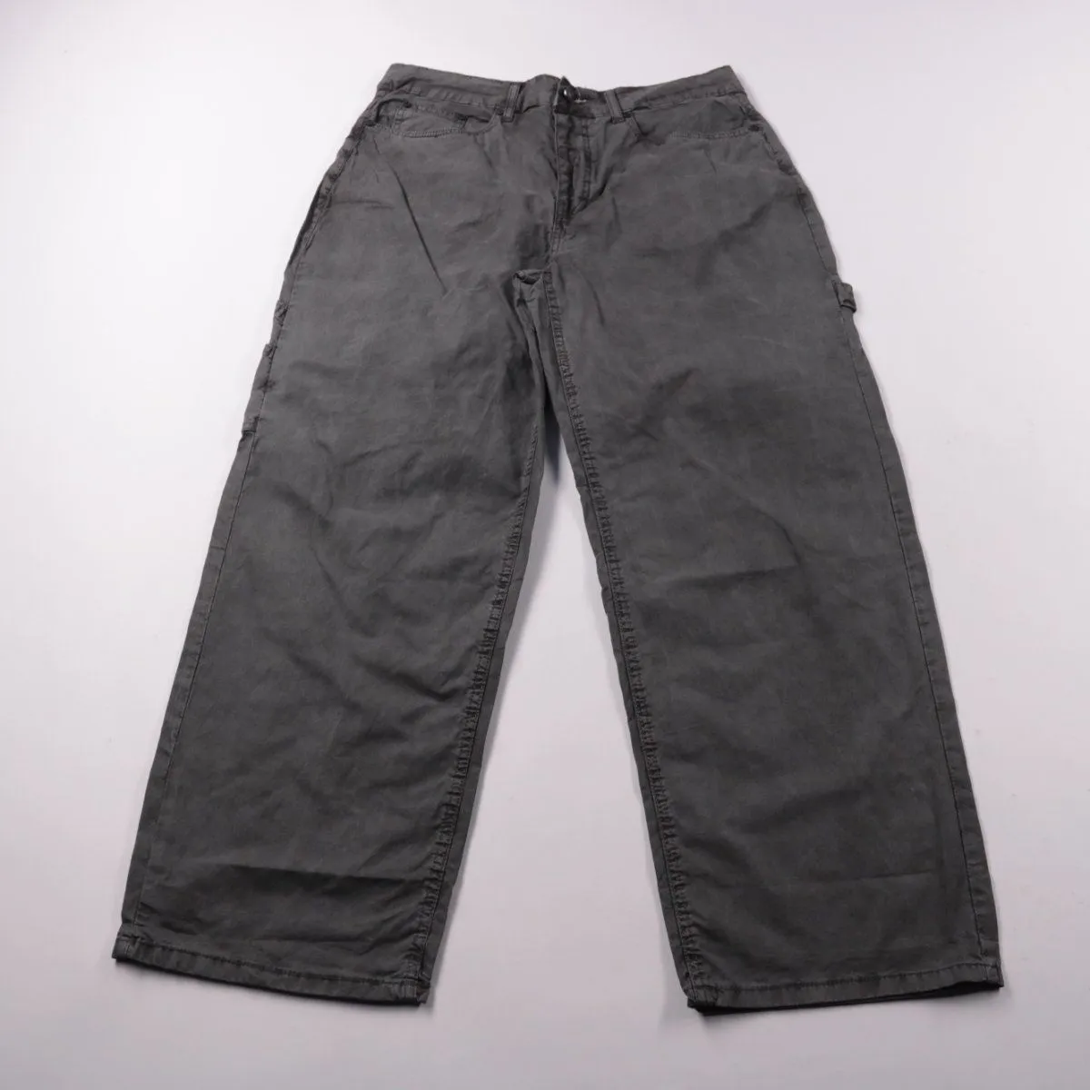 Мужские брюки BoohooMAN тёмно-серого (графитового) цвета из 100% хлопка, с застёжкой на молнию и боковыми карманами в стиле cargo. Подойдут для повседневной носки и прогулок, хорошо сочетаются с футболками, худи и кроссовками. Плотный хлопок практичен в уходе и комфортен на каждый день.