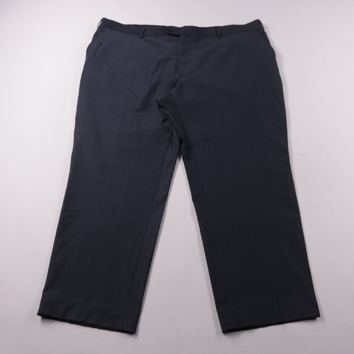 Мужские классические брюки тёмного цвета, выполнены из смесовой ткани с шерстью и добавлением эластана. Подойдут для офиса и повседневной носки в прохладную или умеренную погоду. Материал немного тянется и комфортно садится по талии.