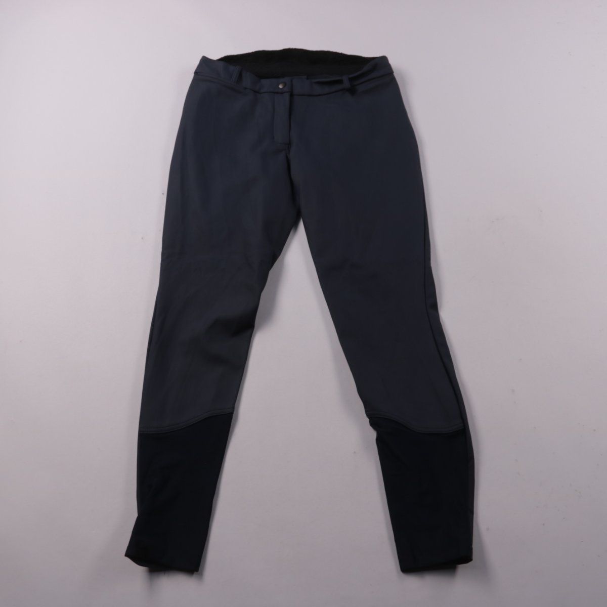 Брюки Decathlon из эластичной синтетической ткани, выполнены в темно-синем цвете с чёрными вставками на нижней части штанин. Подойдут для активных занятий и повседневной носки в прохладную погоду. Практичны за счёт тянущегося материала и усиленных зон внизу.