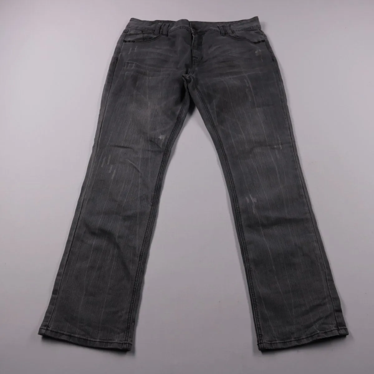 Мужские серые джинсы из плотного денима с лёгким эффектом потертости и классической посадкой. Подойдут на каждый день и для casual-образов с кедами или ботинками. Практичный материал со стрейчем (эластан) обеспечивает более комфортную посадку и свободу движений.