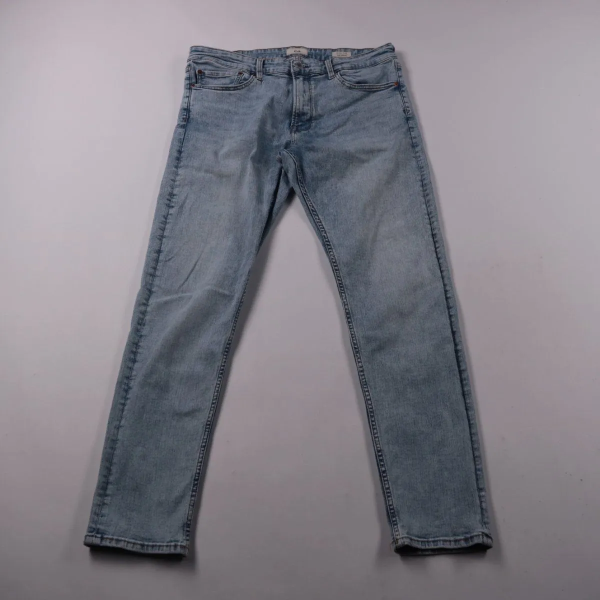 Мужские джинсы C&A светло-голубого цвета, модель slim tapered. Подойдут на каждый день и для прогулок, легко сочетаются с футболками и рубашками. Практичный деним со стрейчем (эластан) комфортнее в движении и лучше держит форму.