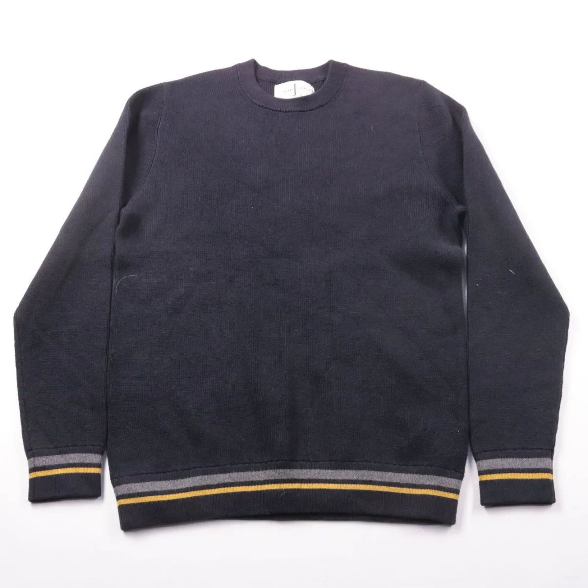 Мужской джемпер Jasper Conran чёрного цвета с круглым вырезом и контрастными полосками на манжетах и по низу. Подойдёт для повседневных образов и офиса в прохладную погоду. Хлопковая пряжа с добавлением нейлона хорошо держит форму и проста в уходе.