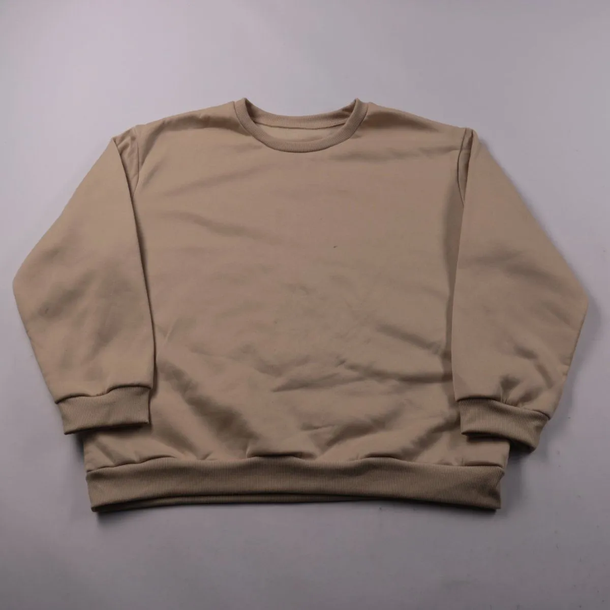 Свитшот без указанного бренда бежевого цвета, с круглым вырезом и принтом на груди. Подойдёт для повседневной носки и как второй слой в прохладную погоду. Полиэстер прост в уходе и быстро сохнет.