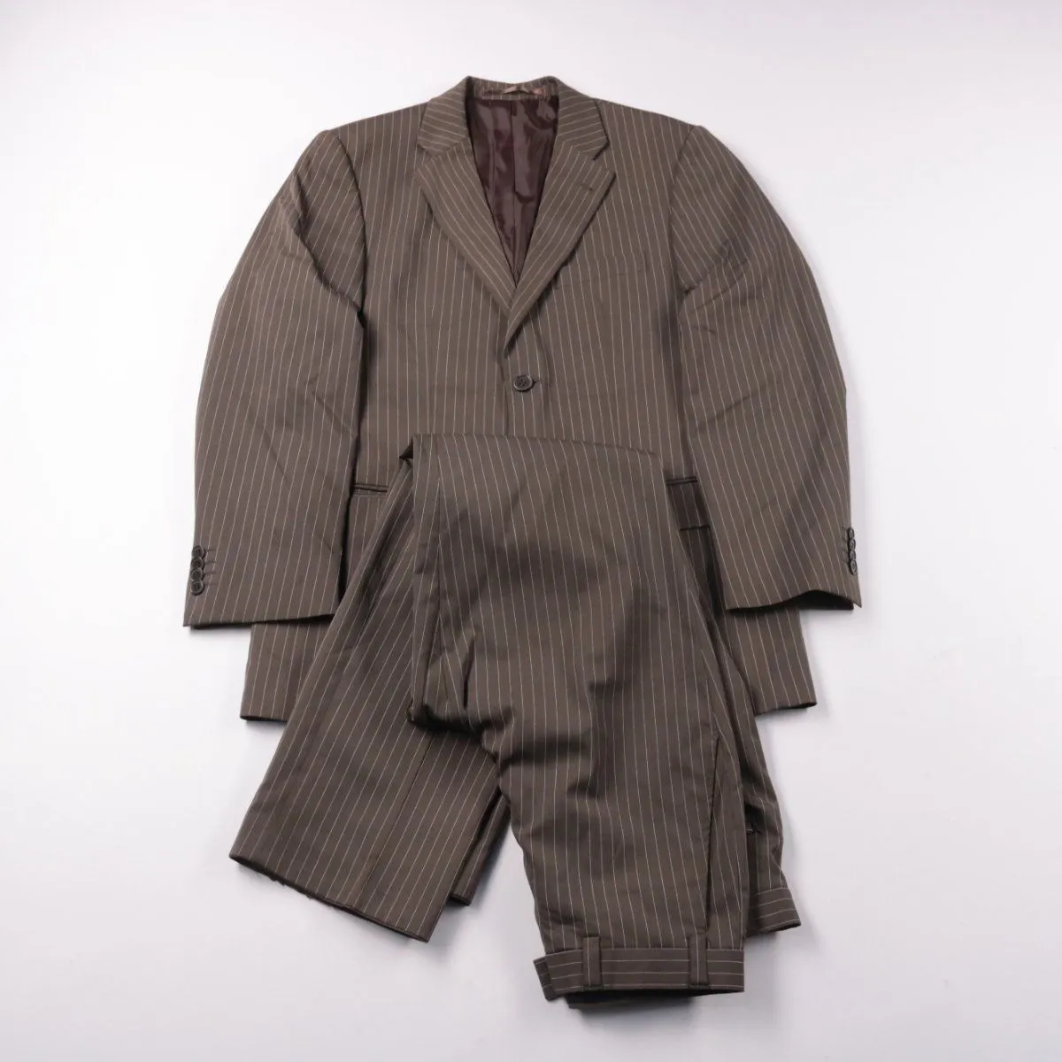 Мужской костюм Angelo Litrico в коричневом цвете с тонкой полоской и лёгкой эластичностью ткани. Подойдёт для офиса, собеседований и деловых мероприятий, хорошо сочетается с однотонной рубашкой и классической обувью. Материал меньше мнётся и комфортнее в посадке за счёт добавления эластана.