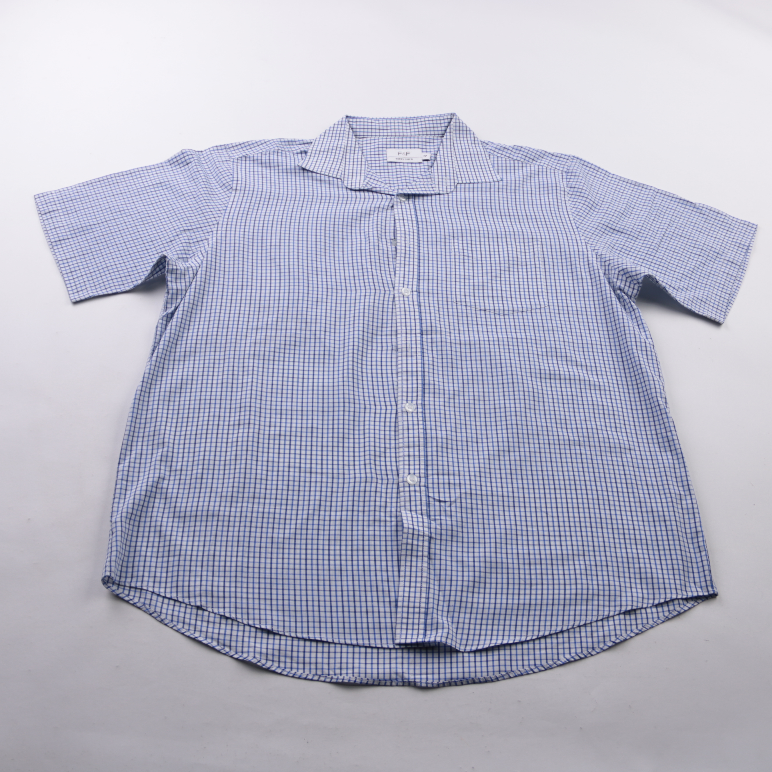 Мужская рубашка F&F в мелкую клетку, с коротким рукавом и нагрудным карманом. Подойдёт для офиса, повседневных образов и поездок в тёплую погоду. Практичный материал easy care (смесь хлопка и полиэстера) меньше мнётся и проще в уходе.