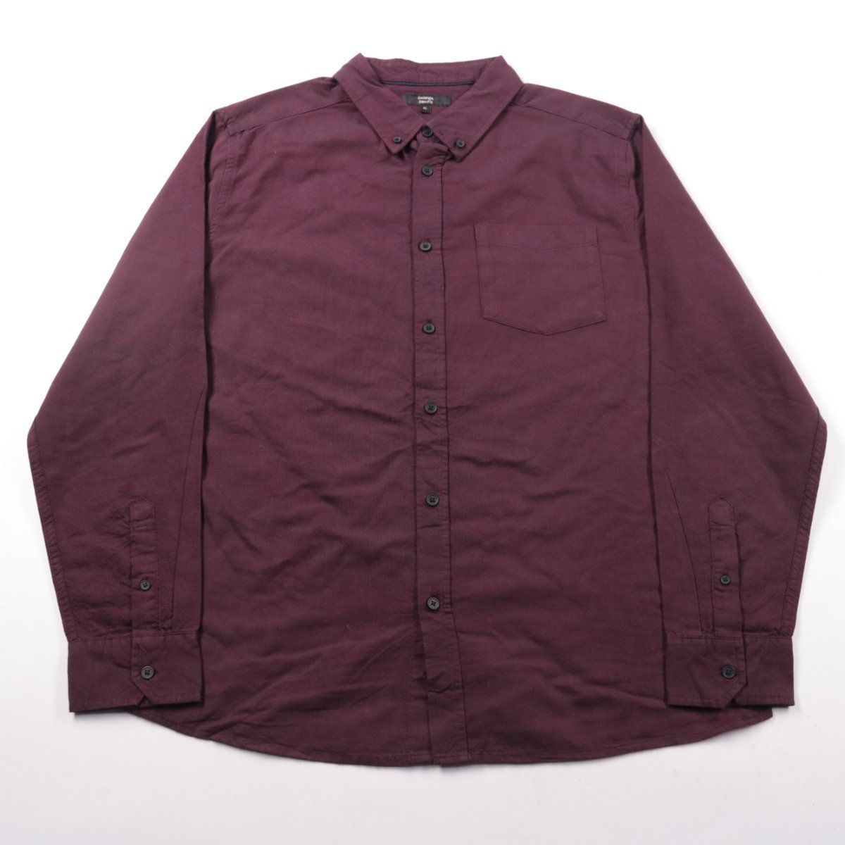 Мужская рубашка George Slim Fit бордового цвета, на пуговицах, с нагрудным карманом и воротником button-down. Подойдёт для офиса и повседневных образов в прохладную погоду благодаря длинному рукаву. Натуральный хлопок хорошо дышит и комфортен в носке.