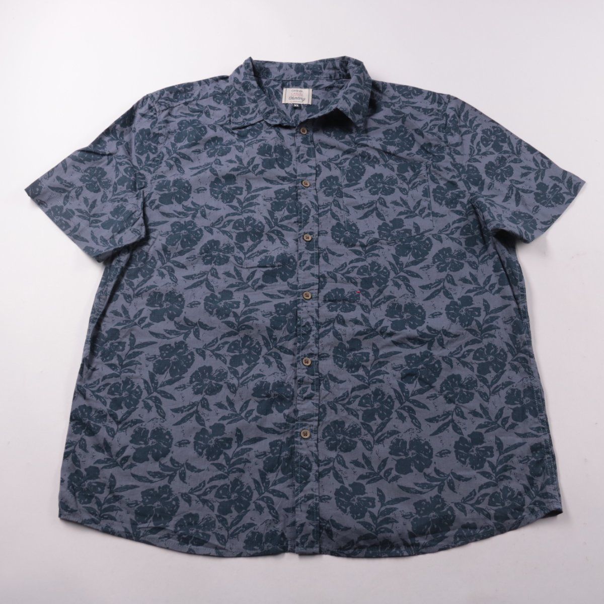 Мужская рубашка George из хлопка, с коротким рукавом и цветочным принтом в синих тонах. Подойдёт для лета и повседневных образов. Натуральная ткань хорошо дышит и комфортна в носке.
