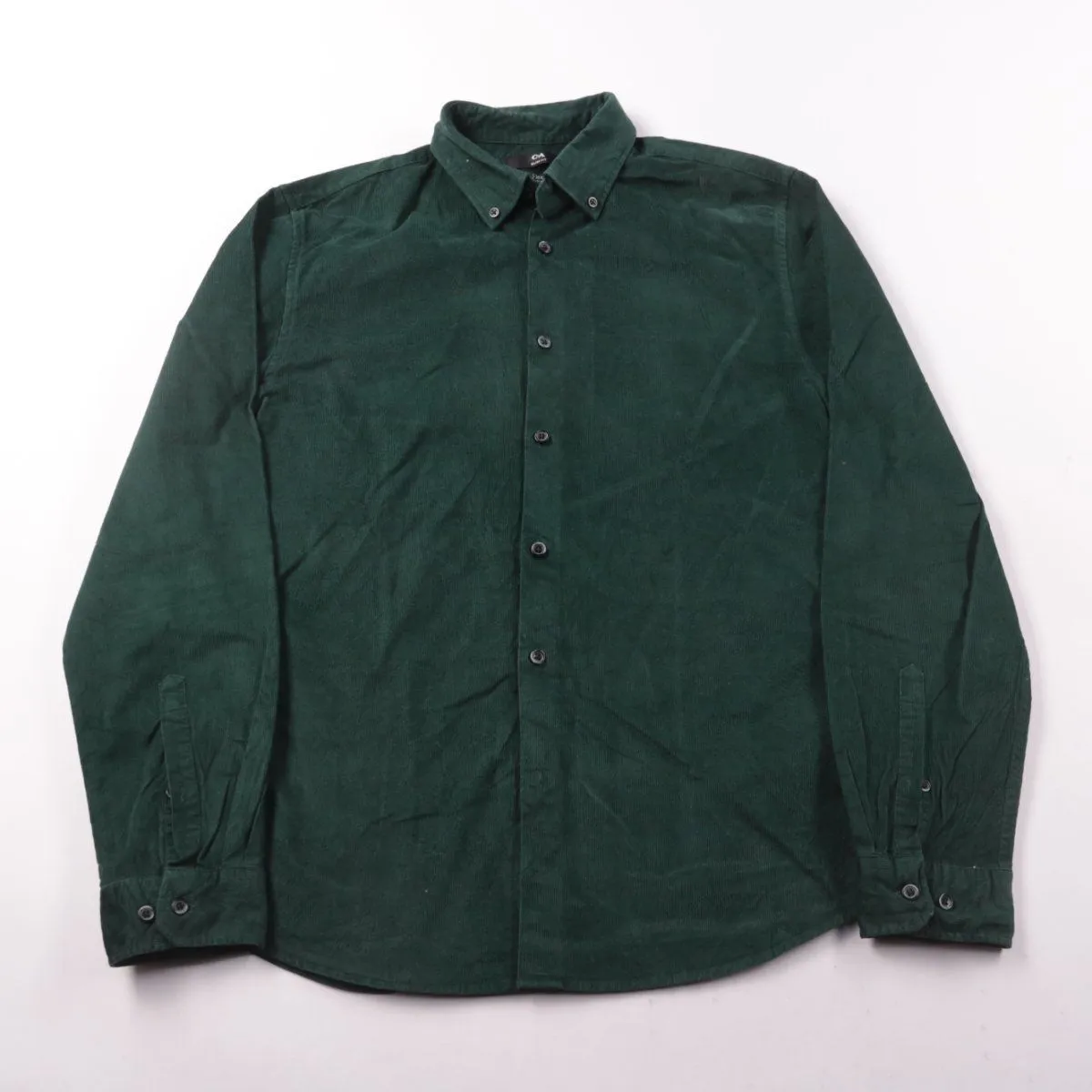 Мужская рубашка C&A Slim Fit тёмно-зелёного цвета, длинный рукав, воротник button-down на пуговицах. Подойдёт для повседневных образов и как второй слой в прохладную погоду. Плотная ткань хорошо держит форму и выглядит аккуратно.