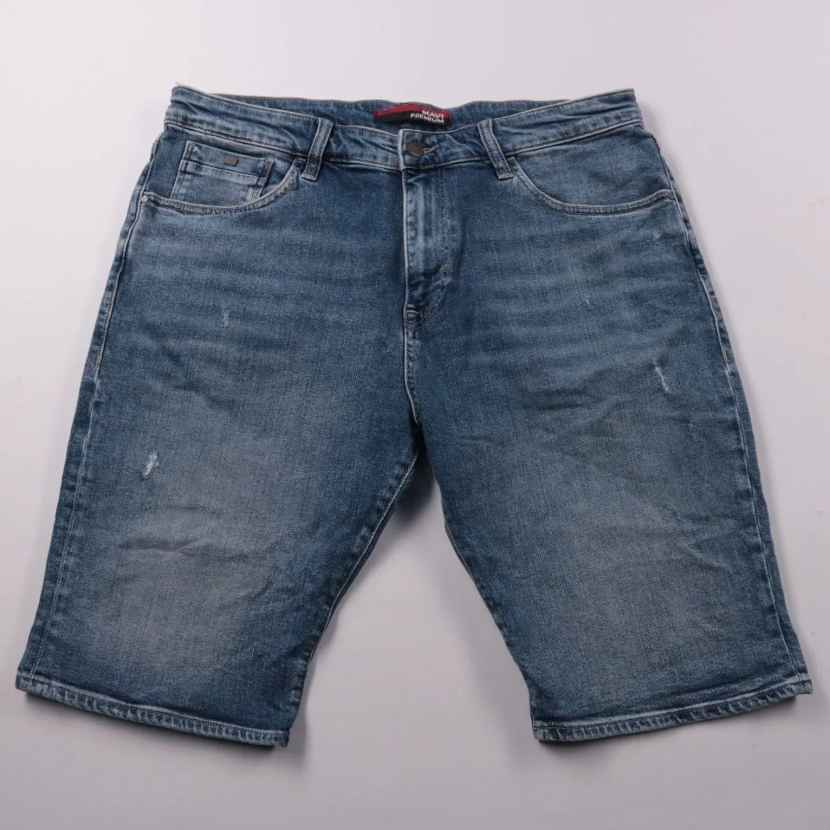 Мужские джинсовые шорты Mavi Premium из мягкого денима со слегка выбеленным эффектом. Подойдут для повседневной носки летом и в поездках, хорошо сочетаются с футболками и кедами. Практичные: плотная ткань и классические карманы, есть небольшой процент эластана для более комфортной посадки.