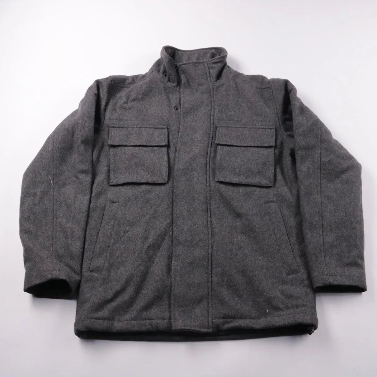 Мужская демисезонная куртка H&M L.O.G.G. в тёмно-сером цвете, прямого кроя с воротником-стойкой и накладными карманами на груди. Подойдёт для города и поездок в прохладную погоду, удобно носить с джинсами и ботинками. Практичный плюс — плотный материал и утеплённая стёганая подкладка лучше держат тепло и защищают от ветра.