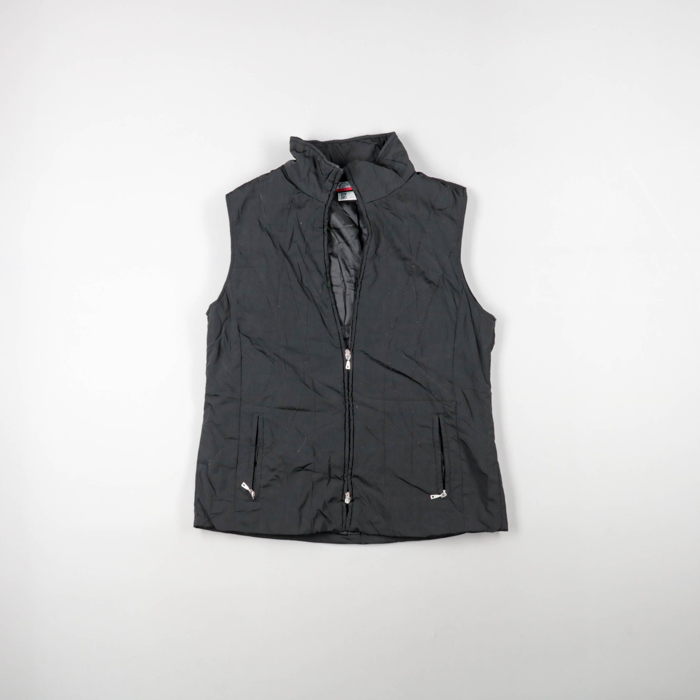 Стёганый утеплённый жилет без бренда, чёрного цвета, с высоким воротником и центральной молнией. Подойдёт для повседневной носки и поездок в прохладную погоду, удобно надевать поверх худи или свитера. Практичный плюс — два кармана на молниях и лёгкий у...