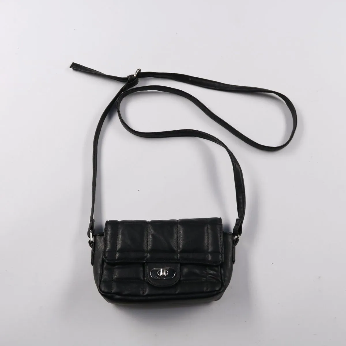Небольшая сумка кросс-боди из чёрной экокожи со стёганым эффектом и клапаном на поворотном замке. Подойдёт для прогулок и повседневных выходов, когда нужно взять только самое необходимое. Длинный ремешок освобождает руки и позволяет носить сумку через ...