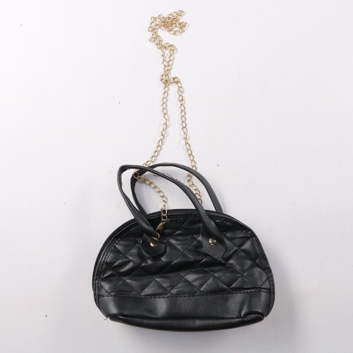 Небольшая стёганая сумка без указанного бренда с короткими ручками и съёмной цепочкой, закрывается на молнию. Подойдёт для повседневных выходов, когда нужно взять с собой телефон, ключи и мелочи. Практичный плюс — лёгкая и компактная, удобно носить в руке или на плече.