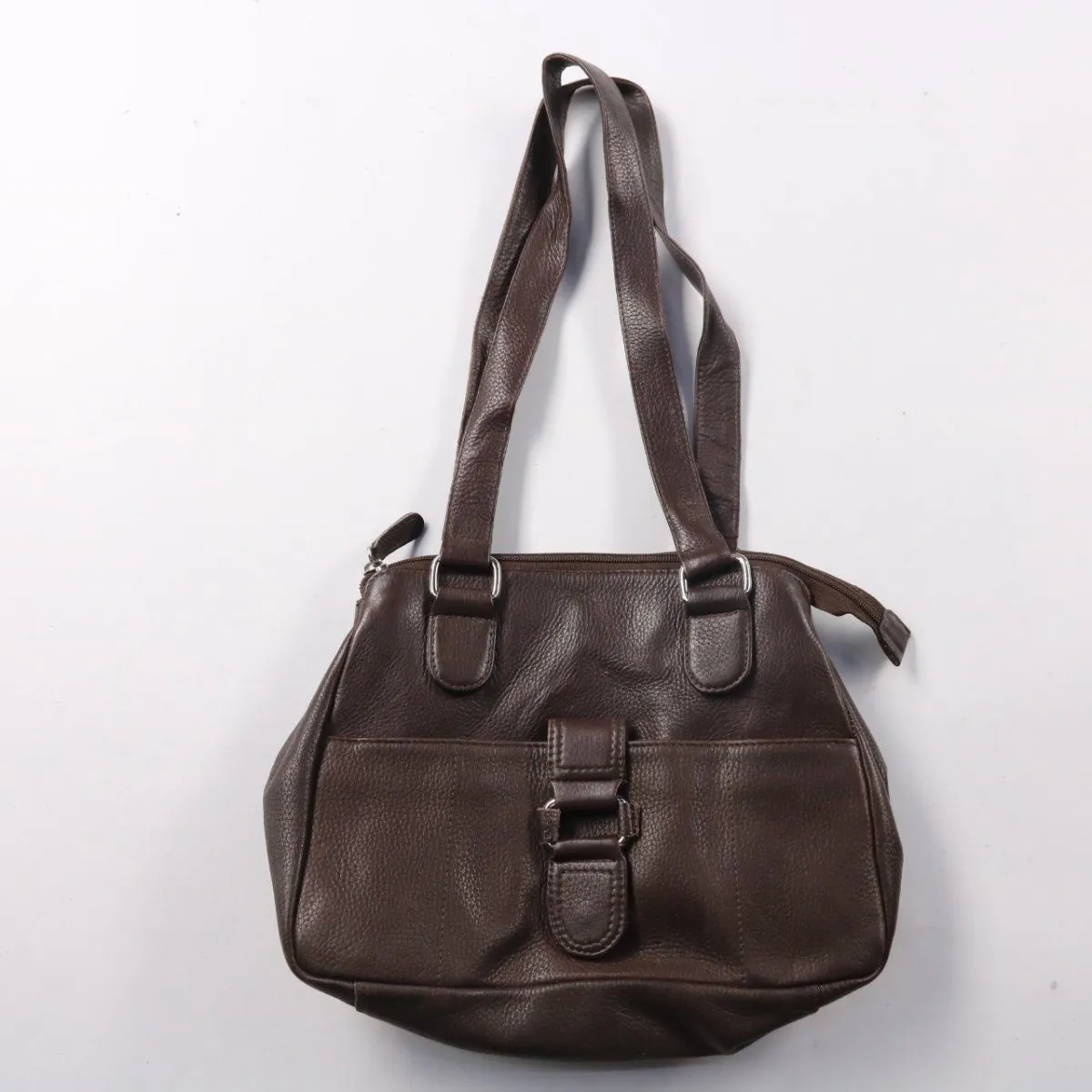 Сумка BODENSCHATZ из коричневой фактурной кожи с двумя длинными ручками и застёжкой на молнию. Подойдёт для повседневных дел и офиса, внутри несколько отделений и карманов для организации вещей. Снаружи есть карман на молнии, удобно держать под рукой мелочи.