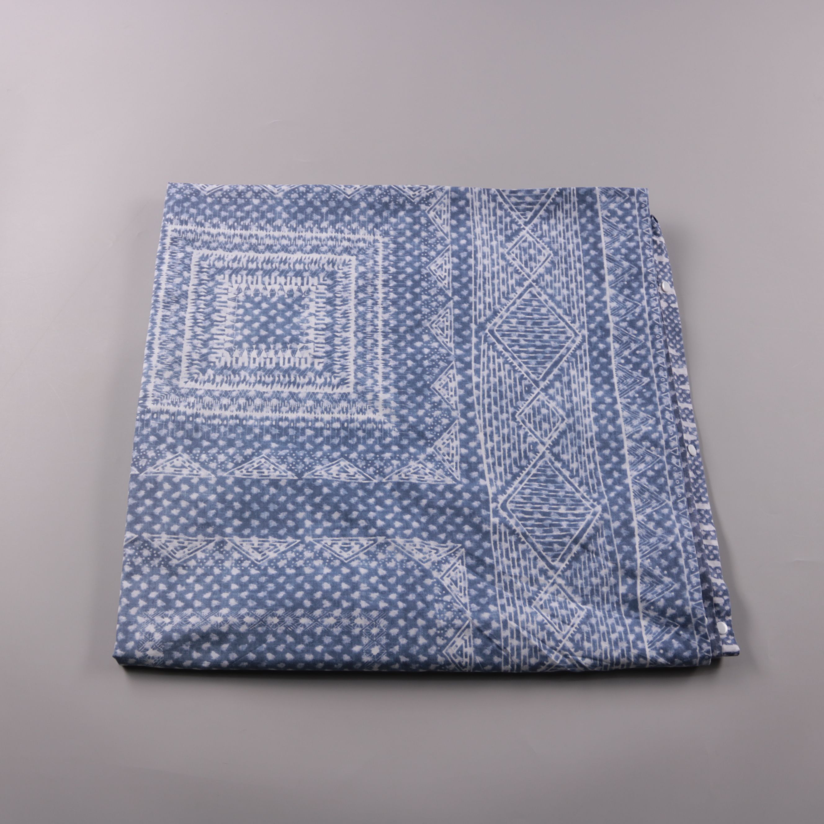 Постельное бельё с сине-белым геометрическим принтом, подойдёт для спальни в спокойных оттенках. Уместно для повседневного использования дома или на даче и хорошо сочетается с однотонным текстилем. Практично тем, что ткань легко стирается и быстро сохнет.