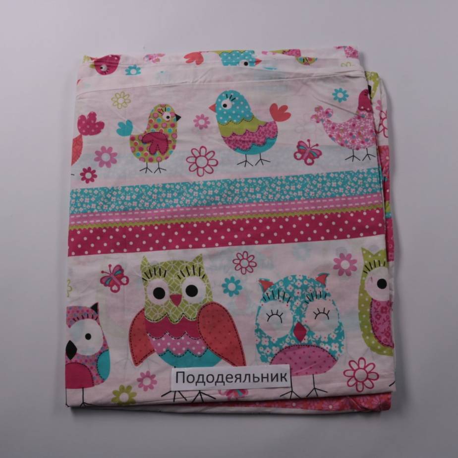 Пододеяльник с ярким принтом сов и птиц, подойдёт для детской или гостевой спальни. Хороший вариант для повседневного использования, легко сочетать с однотонным бельём. Практичный материал удобен в уходе и подходит для частых стирок.