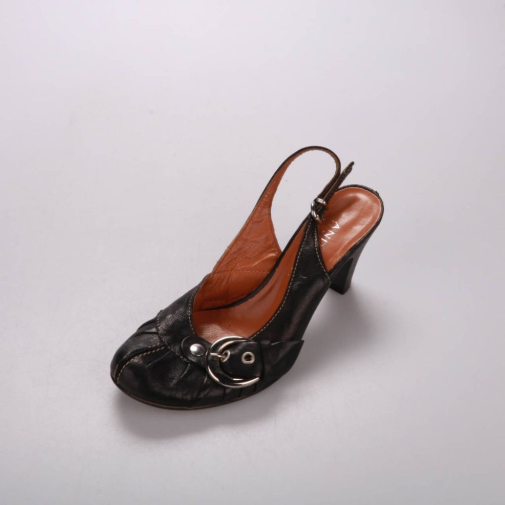 Женские босоножки Andiano из чёрной кожи с открытой пяткой и декоративной пряжкой спереди. Подойдут для лета и тёплого демисезона, хорошо смотрятся с платьями и брюками в повседневных образах. Устойчивый каблук делает пару удобнее для длительной носки.