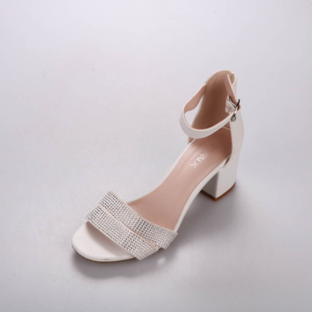 Белые босоножки Catwalk на устойчивом каблуке с ремешком на щиколотке и декором из мелких страз на передней перемычке. Подойдут для летних прогулок, мероприятий и образов с платьями или брюками. Устойчивый каблук и фиксирующий ремешок помогают комфортн...