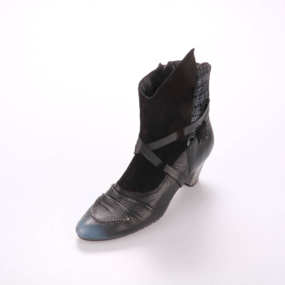 Женские ботильоны из натуральной кожи в чёрном цвете, с ремешками и молнией сбоку. Подойдут для повседневных образов в межсезонье и на прохладную погоду. Устойчивый каблук делает их удобными для ходьбы.