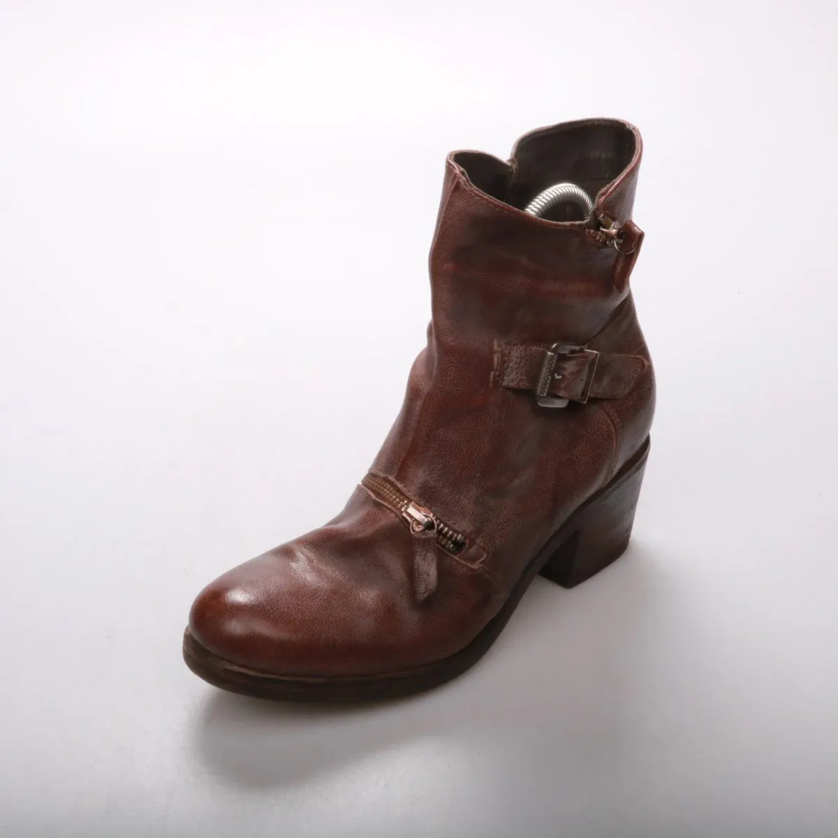 Женские кожаные ботильоны Livorno в коричневом цвете, с декоративными молниями и ремешком. Подойдут на каждый день в демисезон, хорошо смотрятся с джинсами и платьями. Устойчивый каблук делает пару удобной для длительной носки.