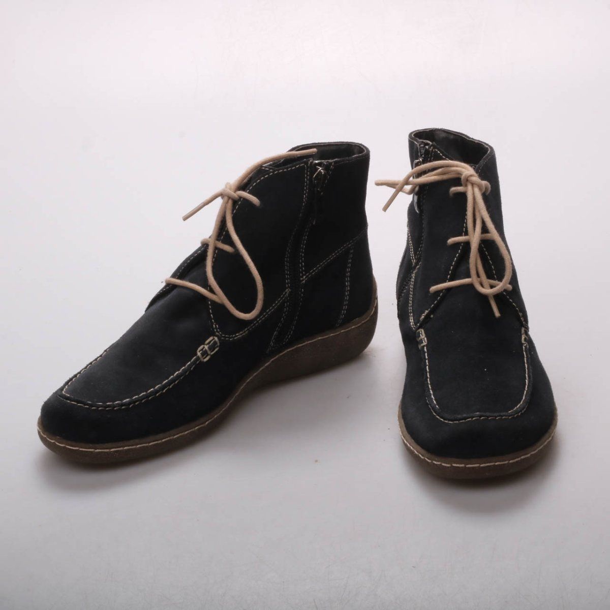 Женские ботильоны Caprice на шнуровке, чёрного цвета, с контрастной строчкой и коричневой подошвой. Подойдут для повседневной носки в прохладную погоду и на межсезонье. Практичное преимущество — удобная нескользящая подошва и съёмная стелька (removable footbed).