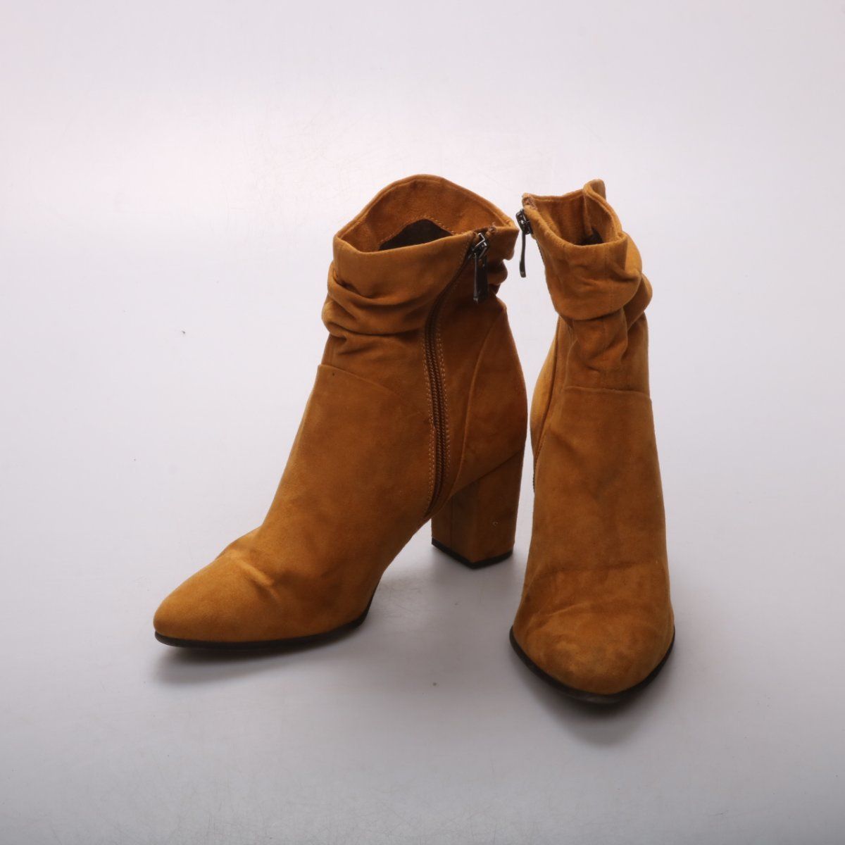 Женские замшевые ботильоны Marco Tozzi коричневого (camel) цвета с боковой молнией и устойчивым каблуком-столбиком. Подойдут для повседневных и офисных образов в межсезонье, хорошо сочетаются с джинсами и платьями. Практичное преимущество — удобная посадка по щиколотке и стабильный каблук для ходьбы.