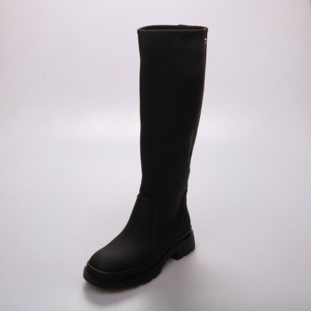 Женские сапоги Xti чёрного цвета на массивной рифлёной подошве. Подойдут для повседневной носки в прохладную погоду и для прогулок по городу. Практичная подошва даёт устойчивость и лучше держит сцепление на мокрой поверхности.